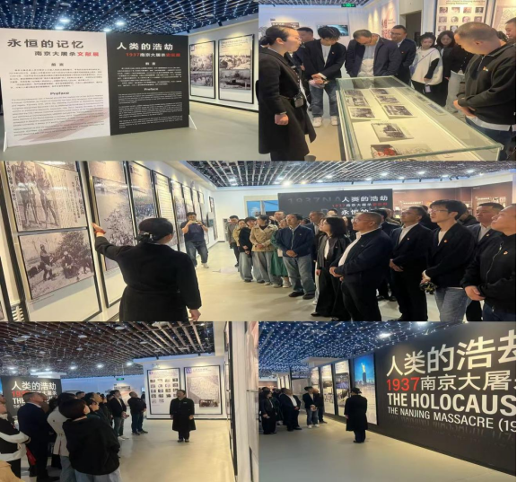 随后,党员们来到“永恒的记忆—南京大屠杀文献展”展区。这里汇集了从日本、美国、英国、德国等多个国家和地区收集的近300件珍贵资料,既有受害方记录苦难的档案、加害方留下的罪证,也有第三方客观见证的文献,同时还展出了南京大屠杀史研究著作、普及读物、论文集、智库研究报告、国家公祭主题出版物,以及多部史料和著作的对外翻译成果。这些跨越国界的文献资料,以铁一般的事实,无可辩驳地印证了南京大屠杀的历史真相,让“历史说话,史实发言”的理念得到生动诠释。党员们认真聆听工作人员讲解,从不同视角重温历史,深刻认识到铭记历史并非延续仇恨,而是为了从历史中汲取智慧,守护来之不易的和平。